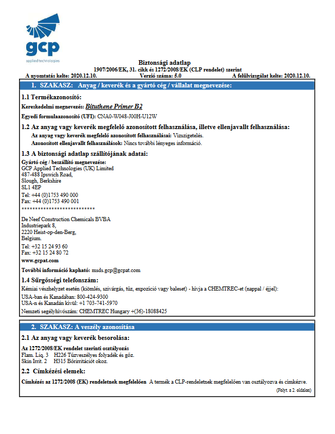 GCP hídszigetelés Összefoglaló Műszaki leírás