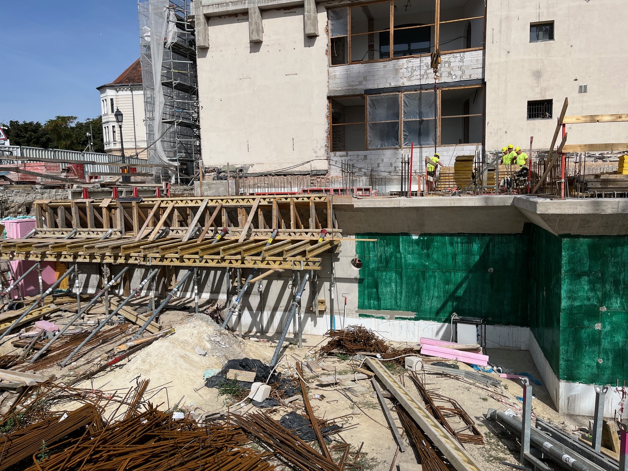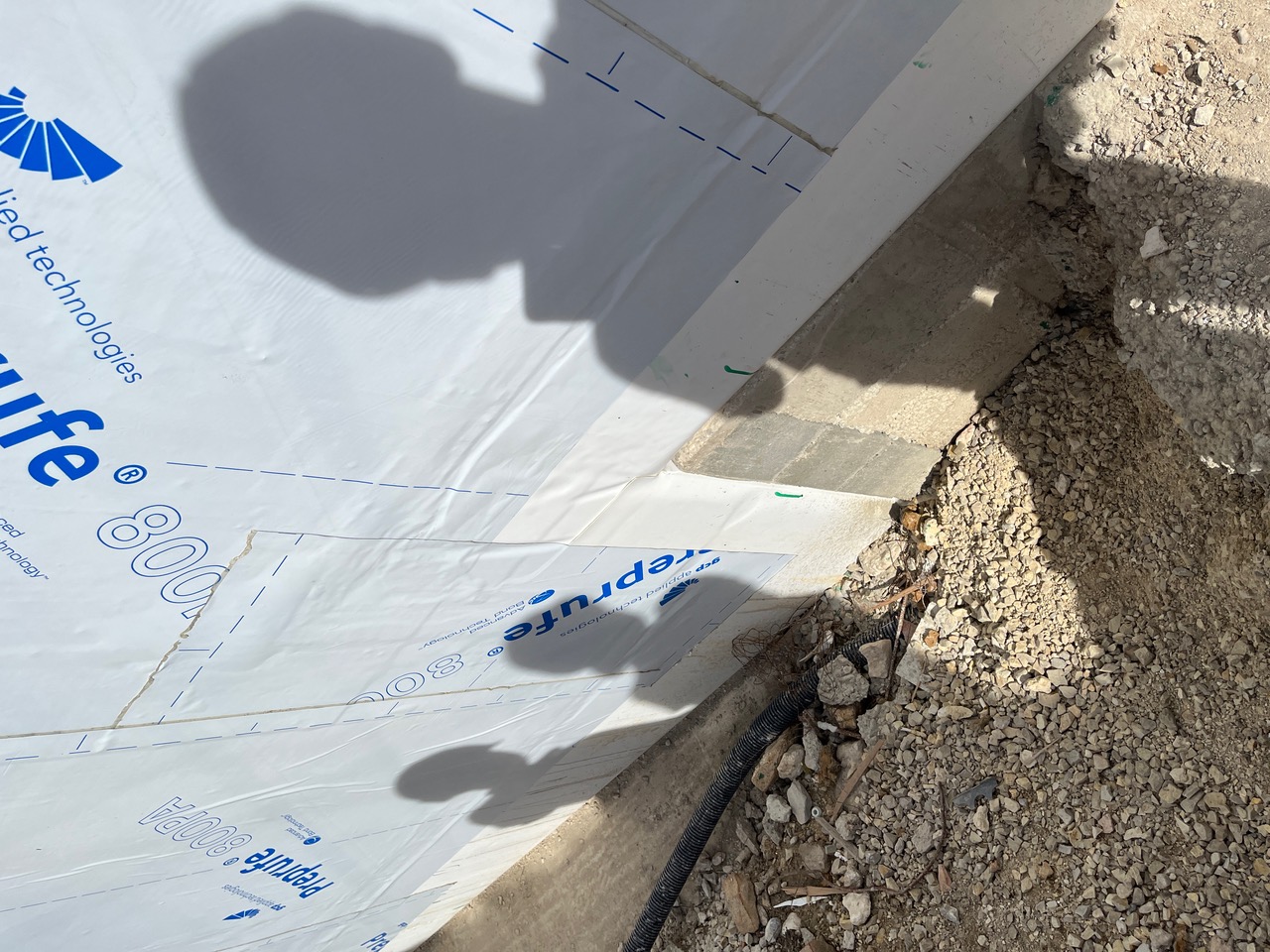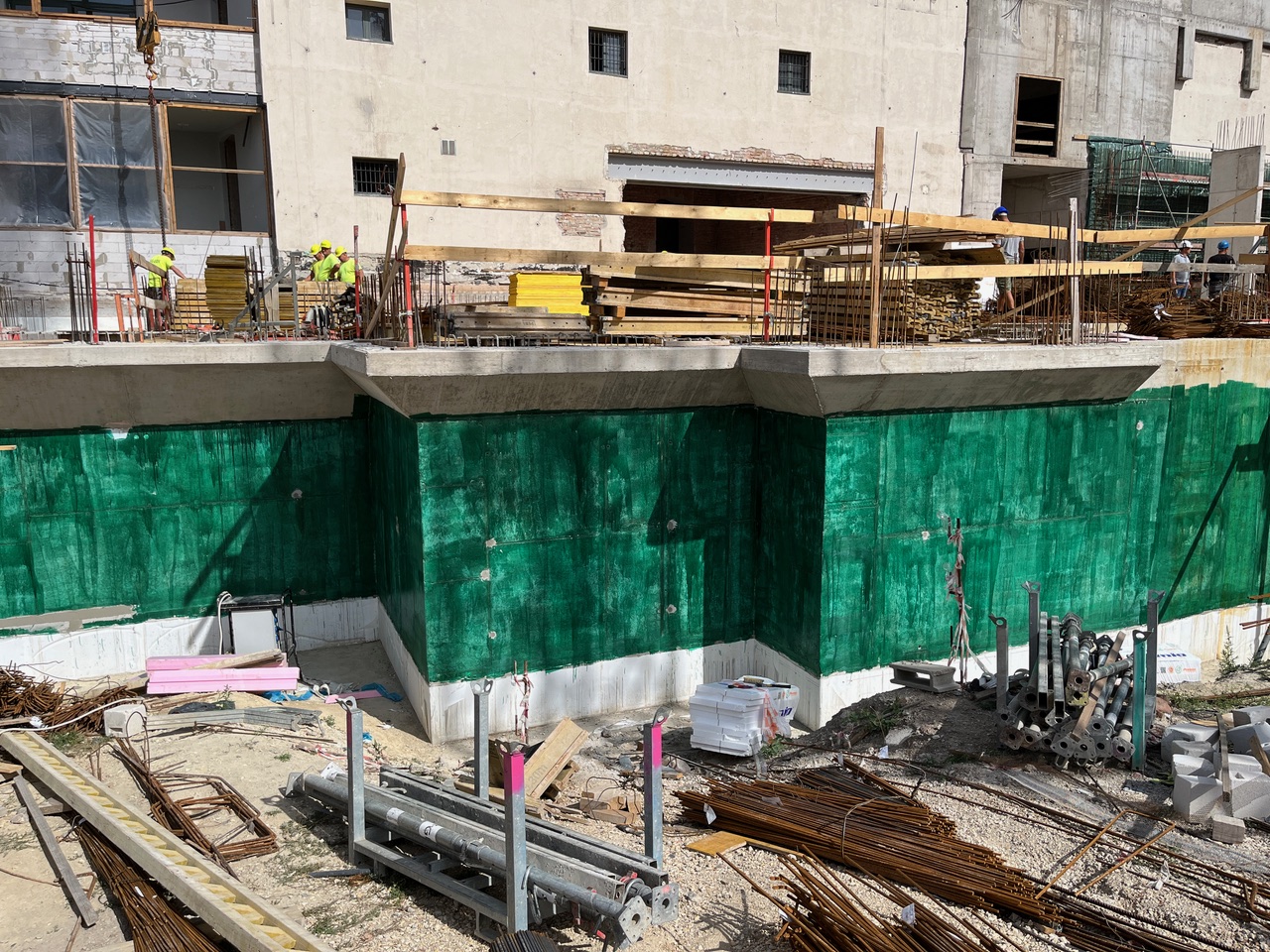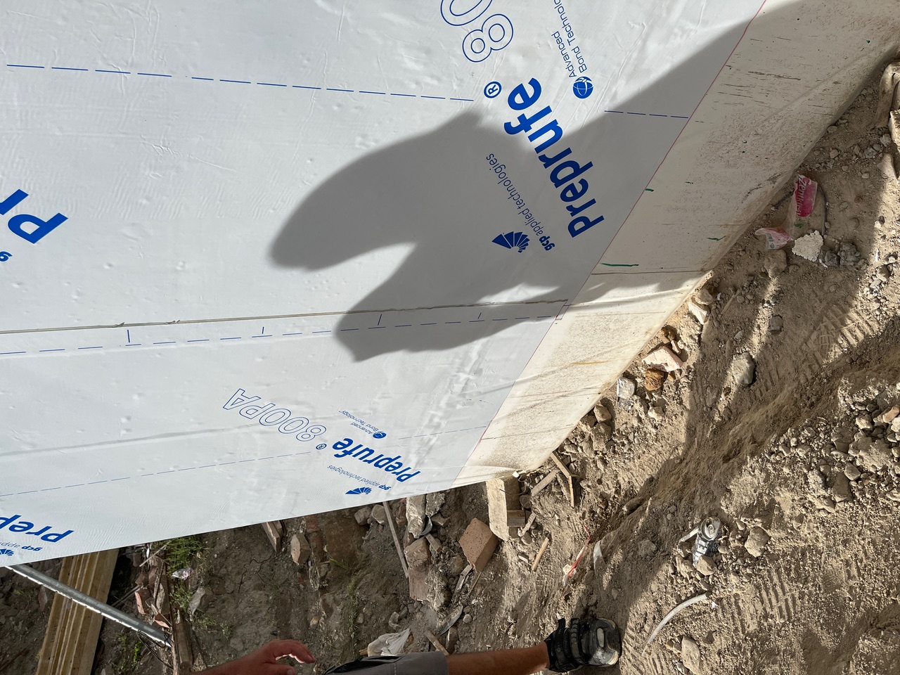 Az alaplemez az új fejlesztésű Preprufe 300PLUS, az oldalfal az utólag elhelyezett Preprufe 800PA és a Primer SC1 alapozó felhasználásával készült el.